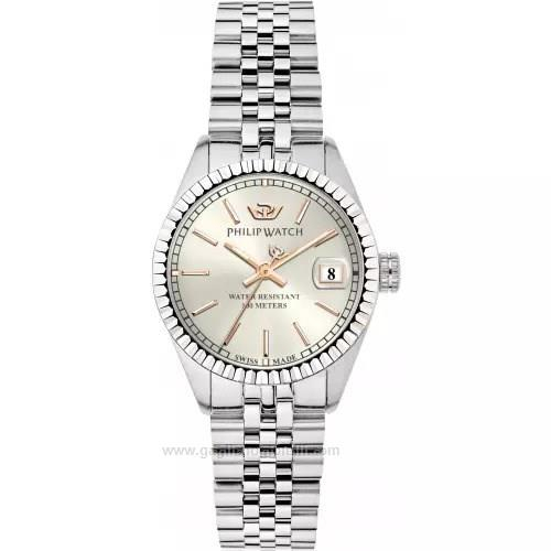 Orologio donna philip watch, r8253597567, collezione caribe, movimento al quarzo, solo tempo, cassa in acciaio 31mm, quadrante silver, bracciale in acciaio, resistenza all'acqua 10atm
