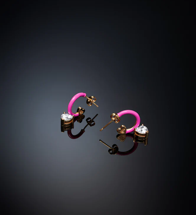 Orecchini small size smaltati 22mm con zircone bianco a forma di cuore placcati in oro 18K.