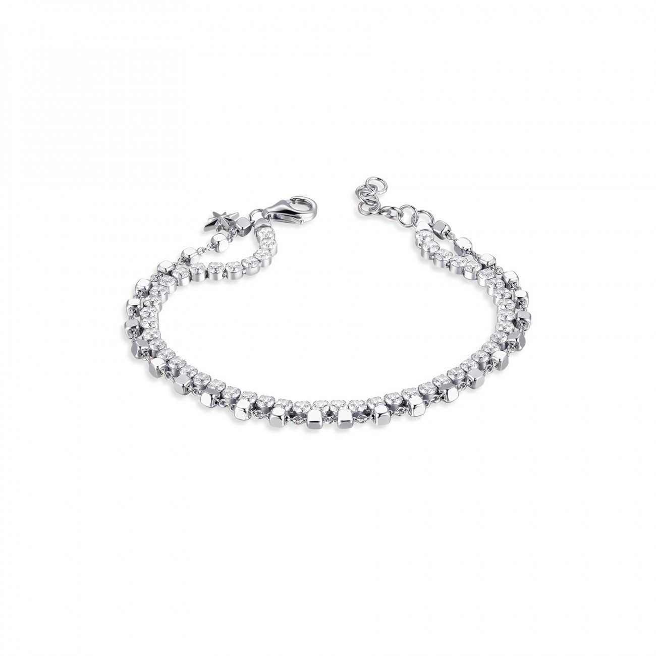 Bracciale componibile doppia catena in argento 925‰ e cubic zirconia bianchi. Misura: 185mm.