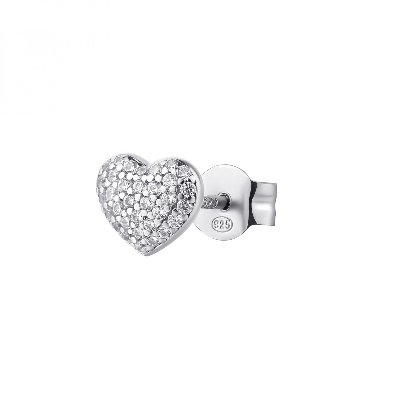 Orecchino in argento 925‰ a forma di cuore con 33 zirconi bianchi. Misura: 6_9mm.