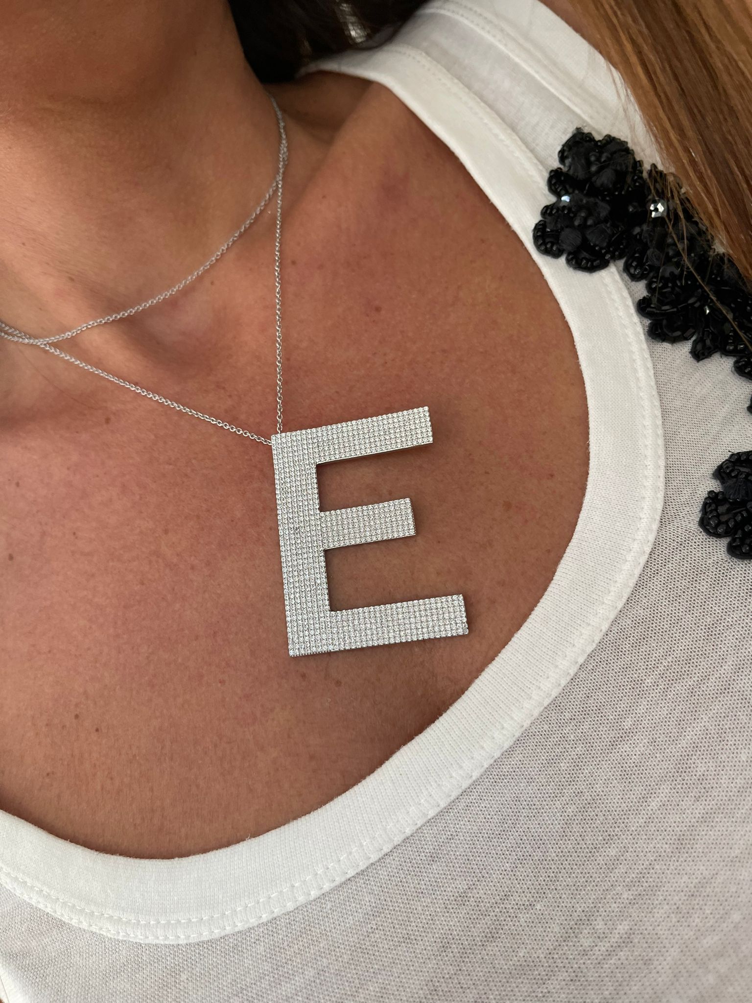 Collana in argento con Swarovski. Si può indossare lunga o a doppio giro.